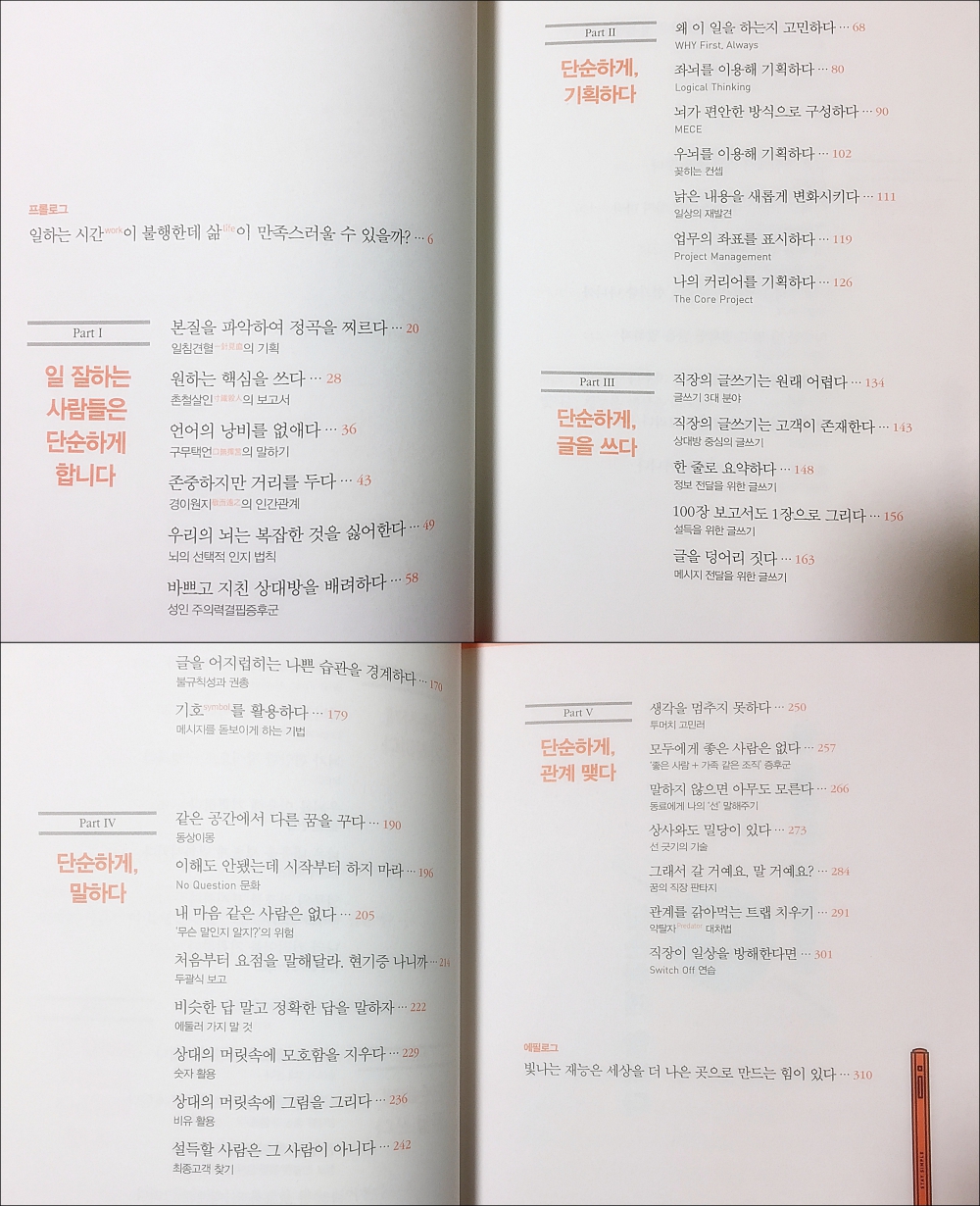 저는 '일 잘하는 사람은 단순하게 합니다'를 읽고 앞으로 실천할 몇 가지를 정했습니다. 물론 그 실천할 것들은 위에 적은 내용들입니다. 이 부분들은 따로 메모를 해서 수시로 보면서 실천을 해야겠습니다.
