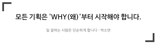 저도 그렇지만 많은 분들이 기획을 하는데 많은 어려움을 느낄 겁니다. 우리가 느끼는 이 어려움의 근원은 바로 '왜'라는 질문에서 시작을 해야 하는데 첫 단계인 'why'를 건너 뛰고 바로 'how'단계를 시작해서 그렇다고 저자는 이야기합니다. 그러면서 'why'에 대한 중요성을 독자에게 강조하고 있습니다.