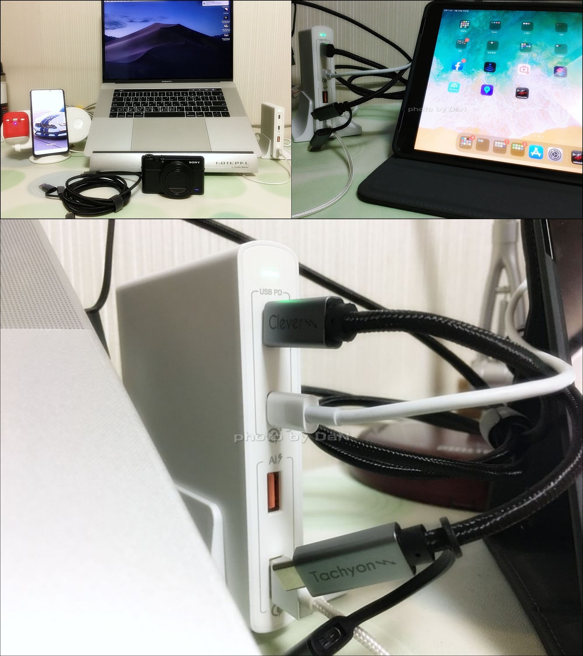 이전에는 맥북프로에 젠더를 꼽아서 기기들을 충전하거나 했는데 이제는 Clever Tachyon Pro usb PD충전기로 다수의 기기 충전이 가능해져서 맥북프로는 조금 쉴 수 있게 되었네요. 물론 아이패드 프로나 아이폰과 맥북프로간의 데이타 sync를 하려면 맥북프로게 연결을 해야 하지만 단순히 충전만을 위한거라면 420QD 고속충전기에 연걸하면 걱정 끝!!