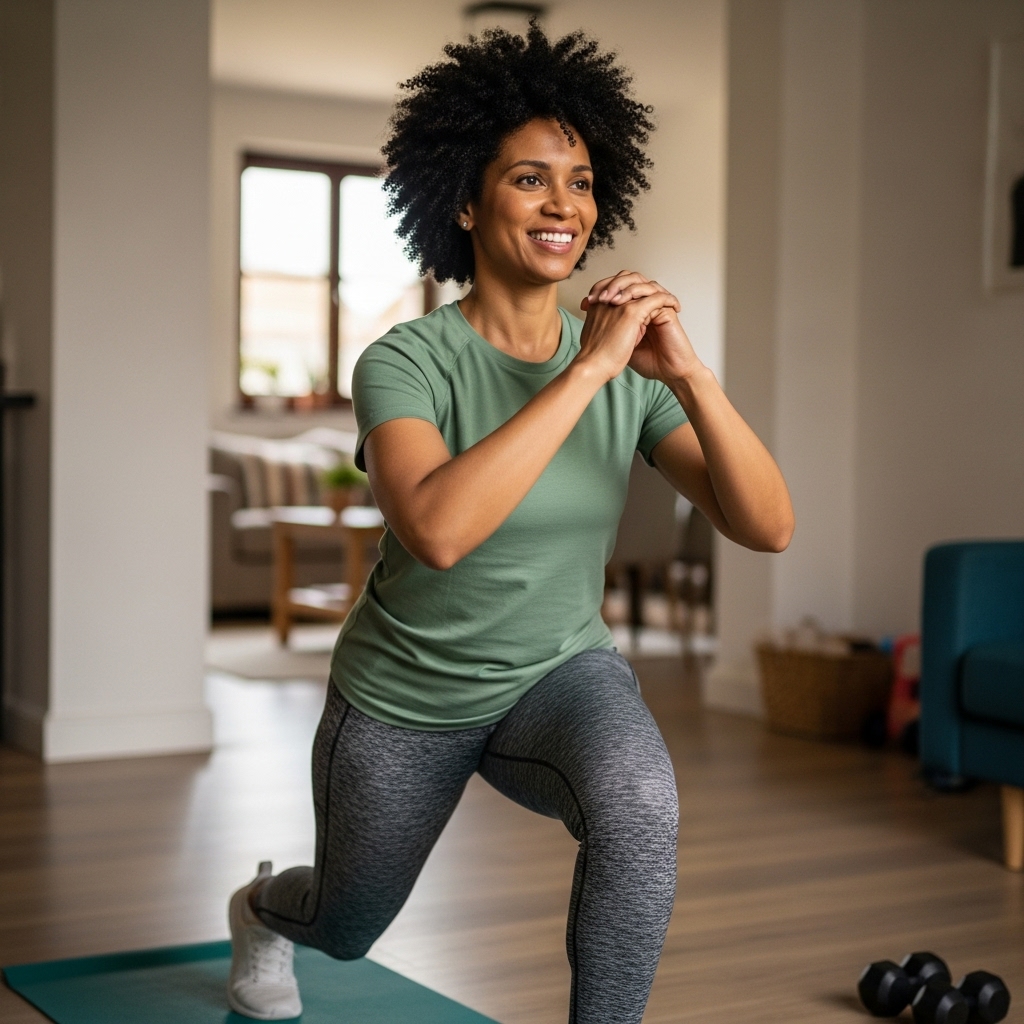 | 런지 (Lunge) | 양쪽 각 10-12회 x 3세트 | 하체, 둔근. 앞 무릎이 90도가 되도록 내려가고, 균형을 잡으세요. |